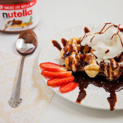 Your choice of waffle or Crêpe drizzled in gourmet Nutella chocolate hazelnut, powdered with sugar, whipped cream and our scrumptious chocolate sauce.